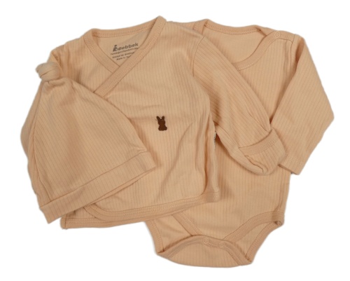 • 3Set - Marhuľová rebrovaná zavinovací prepínaci mikina so zajíčkem + body + čapica Bebbek