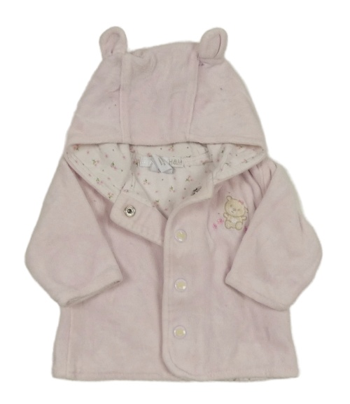 Svetloružová zamatová prepínaci podšitá mikina s medvedíkom a kapucňou