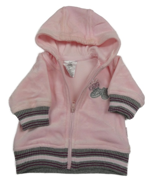 Svetloružová zamatová prepínaci mikina s topánkami a pruhmi a kapucňou