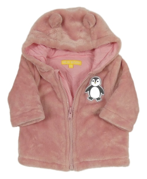 Staroružová chlpatá podšitá prepínaci mikina s tučňákem a kapucňou