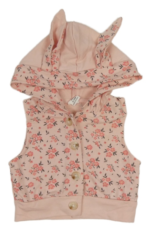 Svetloružová tepláková vesta s kvietkami a kapucňou Shein