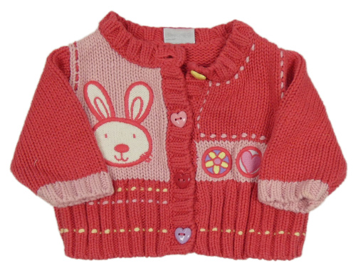 Jahodovo-ružový prepínaci sveter s králikom a nášivkami Cherokee