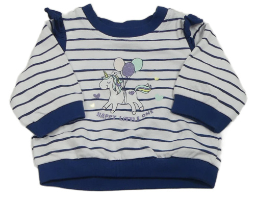 Bielo-tmavomodrá pruhovaná mikina s jednorožcom a volánikmi Ergee