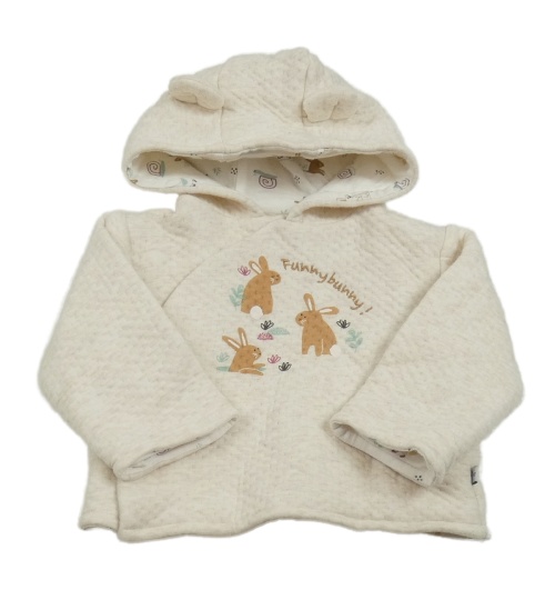 Smotanová zavinovací mikina s králikmi a kapucňou