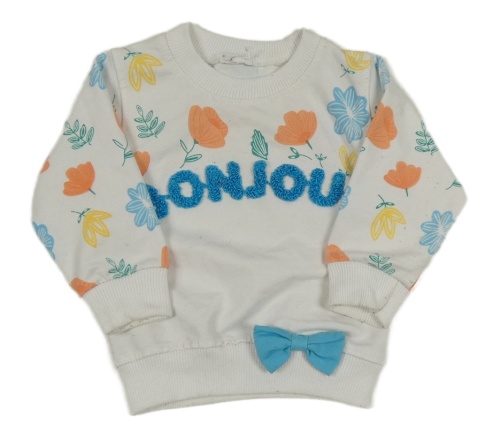 Biela mikina s kvietkami a nápisom