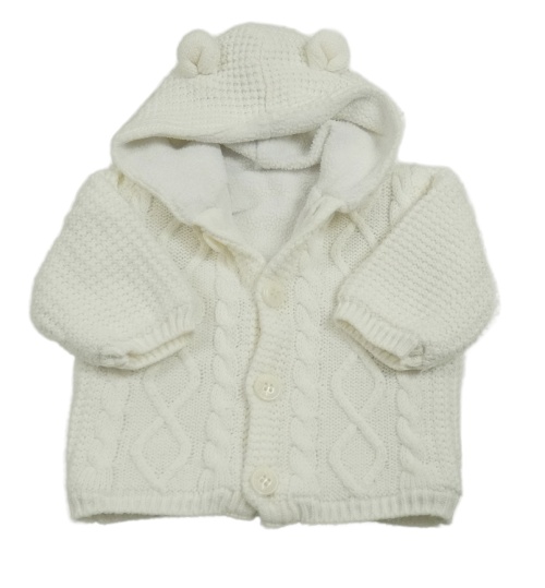 Smotanový vzorovaný pletený prepínaci podšitý sveter s kapucňou s uškami George