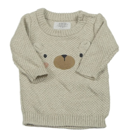 Svetlobéžový melírovaný vzorovaný sveter s medvedíkom F&F
