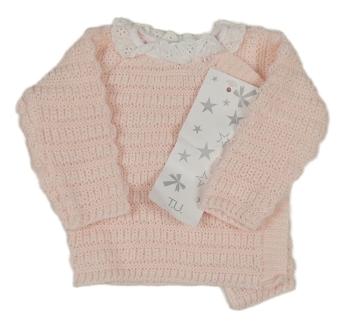 Nové - Svetloružový prepínaci sveter s madeirovým volánikom