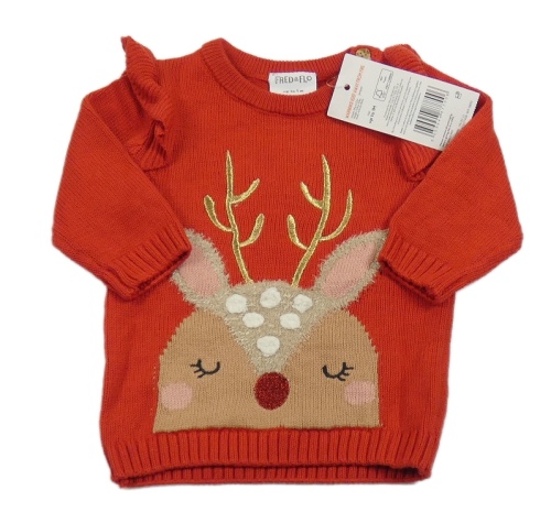 Nové - červený sveter so sobom a volánikmi F&F