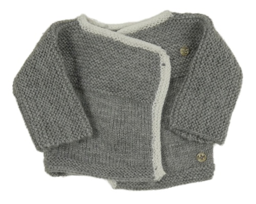 Sivo-biely melírovaný zavinovací pletený prepínaci sveter