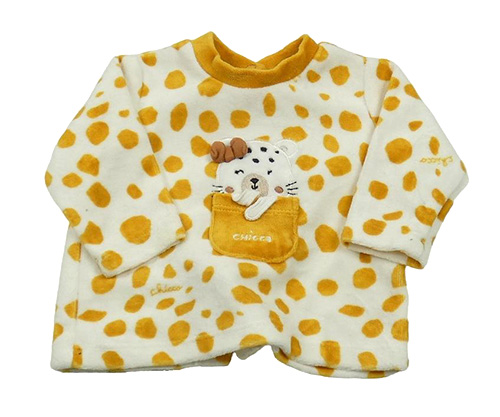 Bielo-horčicová bodkovaná á zamatová mikina s kočičkou Chicco