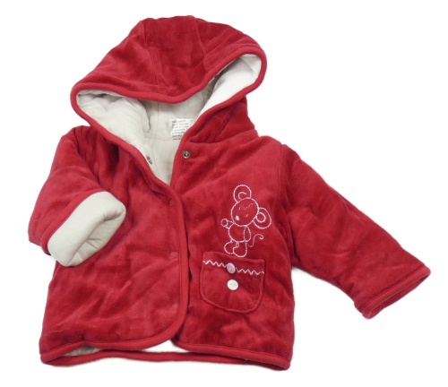 Červená zamatová zateplená prepínaci mikina s myškou a kapucňou