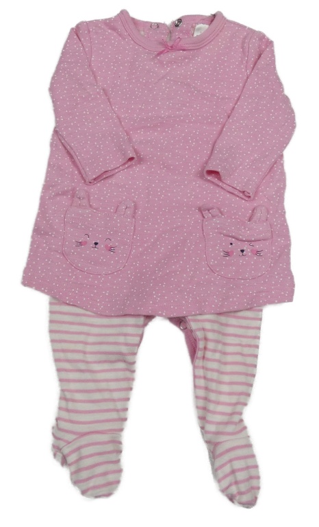 Ružovo-biela bodkovaná á mikina s králíčky a všitým overalem Topomini