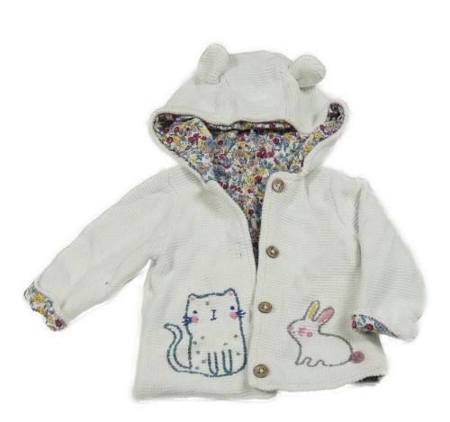 Biely podšitý prepínaci sveter s mačkou a králikom a kapucňou Tu