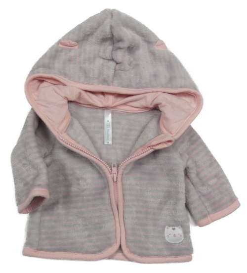 Sivo-ružová pruhovaná chlpatá prepínaci mikina s mačkou a kapucňou
