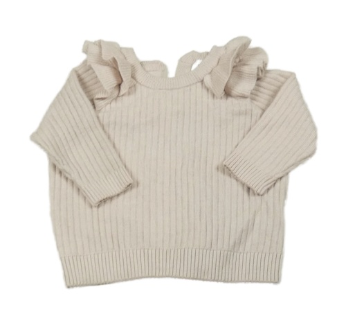 Béžový rebrovaný úpletový sveter s volánikmi Next