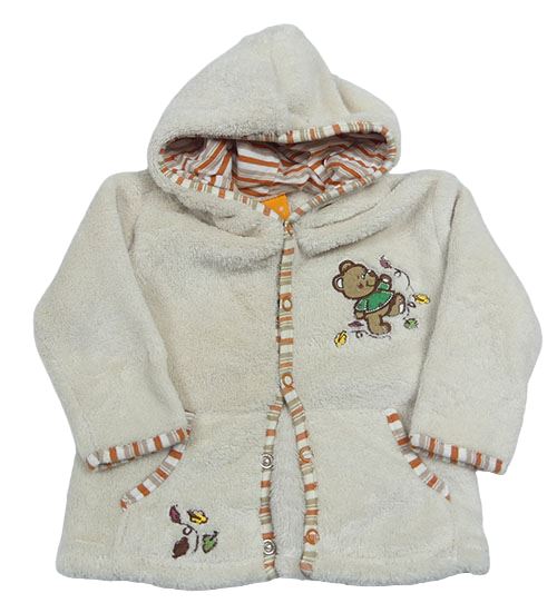 Béžová chlpatá prepínaci mikina s medvedíkom a kapucňou