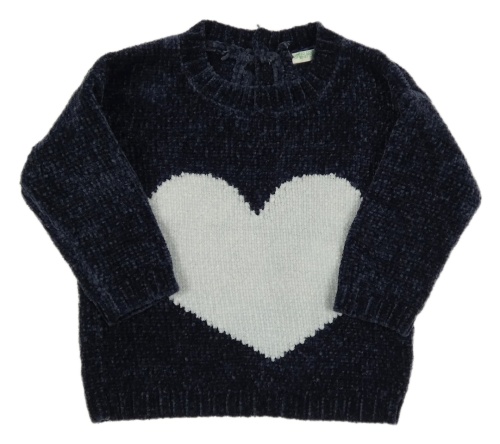 Tmavomodrý žinylkový sveter so srdiečkom Benetton