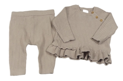 2Set - Béžový rebrovaný úpletový sveter s volánkem + turecké nohavice Next