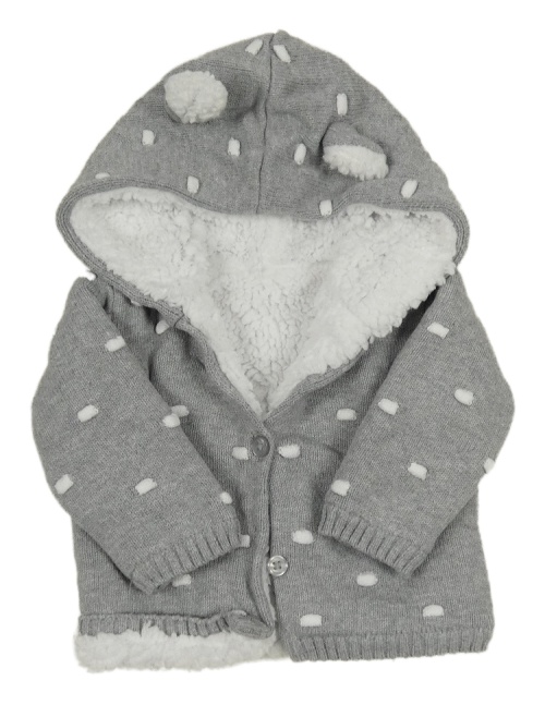 Sivý prepínaci zateplený sveter s bambulkami a kapucňou Matalan