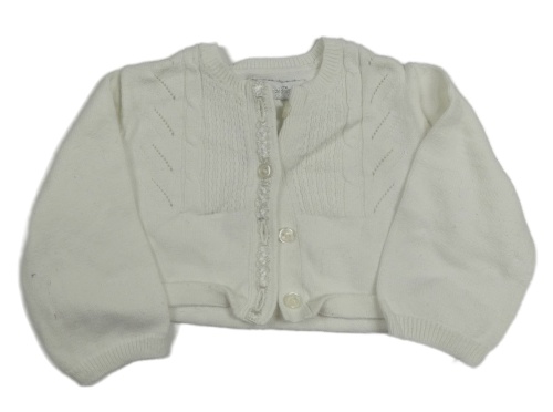 Biele pletené prepínaci bolerko s dírkovaným vzorom Mamas&Papas
