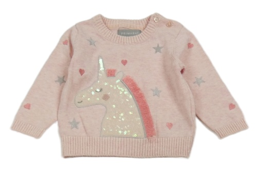 Svetloružový sveter s jednorožcem z flitrů Primark