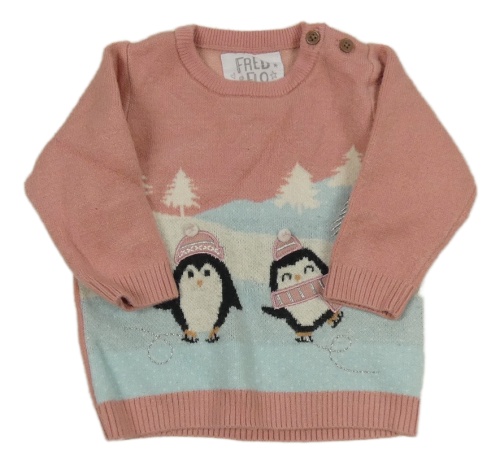 Starorůžovo-svetlomodrý úpletový sveter s tučňáčky F&F