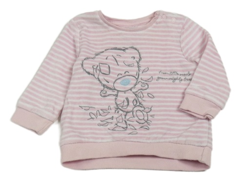 Ružovo-biela pruhovaná zamatová mikina s medvěďom