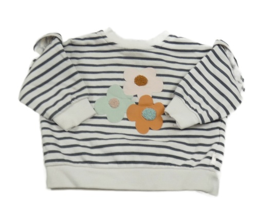 Bielo-antracitová pruhovaná mikina s kvetmi a volánikmi