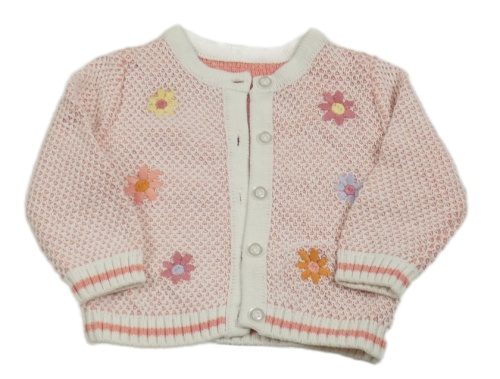 Ružovo-biely vzorovaný prepínaci sveter s výšivkami květů Nutmeg