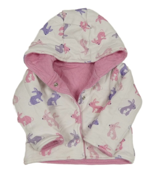 Biela zateplená prepínaci obojstranná mikina s králikmi a kapucňou Jojo Maman Bébé