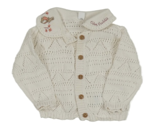 Biely perforovaný prepínaci sveter s golierikom s Peter Rabbit M&S