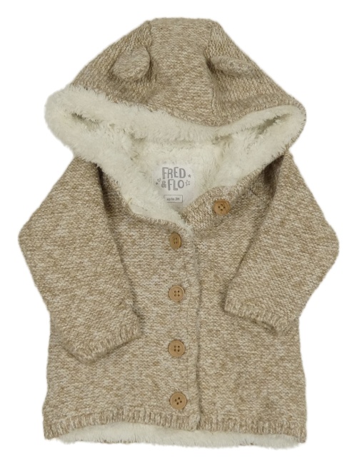Hnedý melírovaný zateplený prepínaci sveter s kapucňou F&F