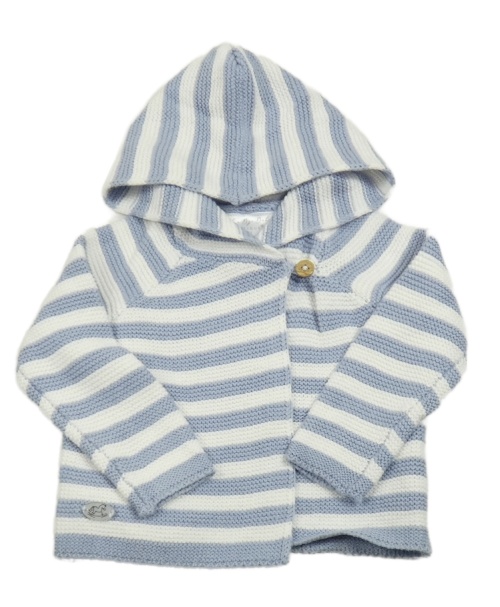 • Modro-biely pruhovaný zavinovací prepínaci sveter s kapucňou Rock-a-Bye Baby
