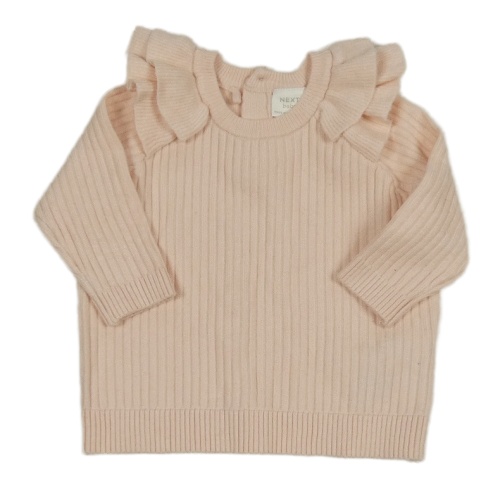 Světlebroskvový rebrovaný úpletový sveter s volánikmi Next