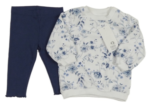 Nové - 2Set - Biela mikina s kytičkami + tmavomodré rebrované legíny F&F