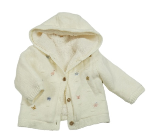 Smotanový zateplený prepínaci sveter s výšivkami a kapucňou Nutmeg