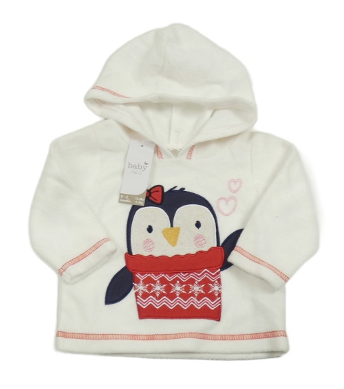 Nové - Biela fleecová mikina s tučňákem a kapucňou M&Co.