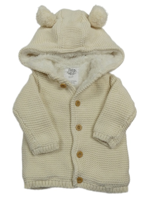 Smotanový prepínaci zateplený sveter s kapucňou s bambulemi F&F