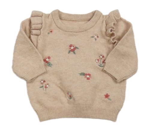 Staroružový melírovaný sveter s výšivkami květů a volánikmi George