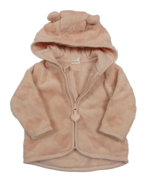 Ružová chlpatá prepínaci mikina so srdiečkami a kapucňou H&M