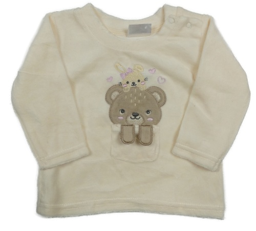Smotanová zamatová mikina s medvedíkom a zajačikom a vreckom orsolino