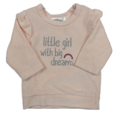 Svetloružová rebrovaná zamatová mikina s nápisom a volánikmi Ergee
