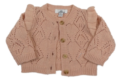 Svetloružový prepínaci sveter s dirkovaným vzorom