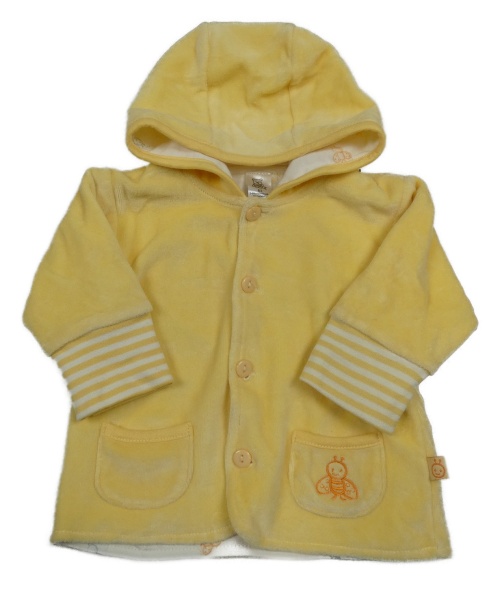 • Žltá zamatová prepínaci podšitá mikina so včielkou a pruhmi a kapucňou