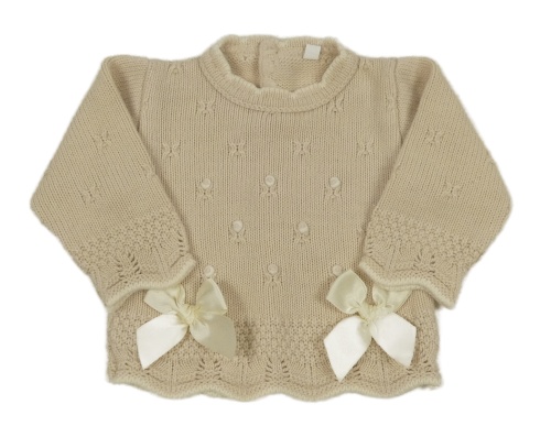 Béžový vzorovaný sveter s mašľami
