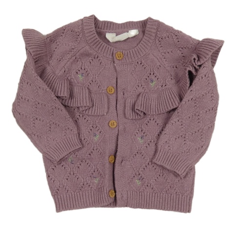 Fialovohnědý károvaný úpletový prepínaci sveter s kvietkami a volánikmi PRIMARK