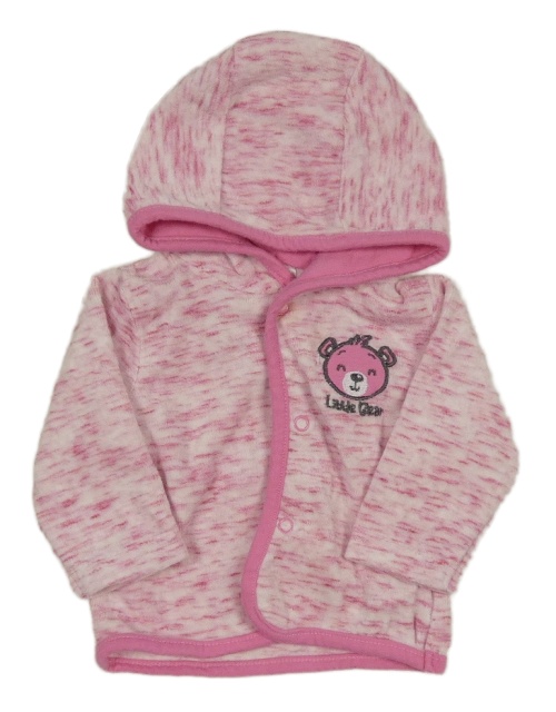 Ružovo-biela melírovaná zamatová prepínaci mikina s medveďmi a kapucňou