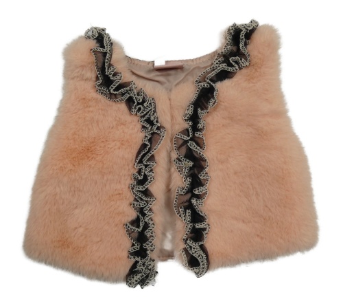 Svetloružová kožušinová vesta s volánom