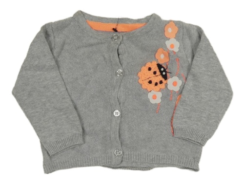 Sivý melírovaný prepínaci sveter s lienkou a kvetmi
